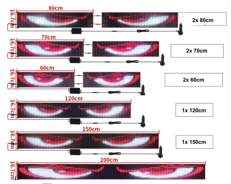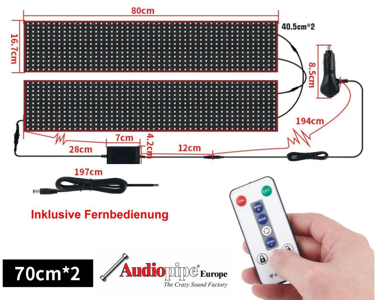 - Eigener Text speicherbar , entweder Lauflicht oder Daueranzeige