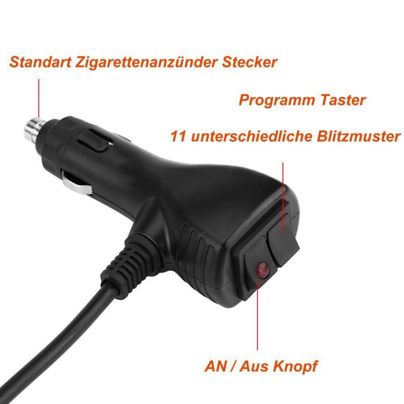 - 11 Blitzprogramme per Taster am Zigarettenanzünder einstellbar